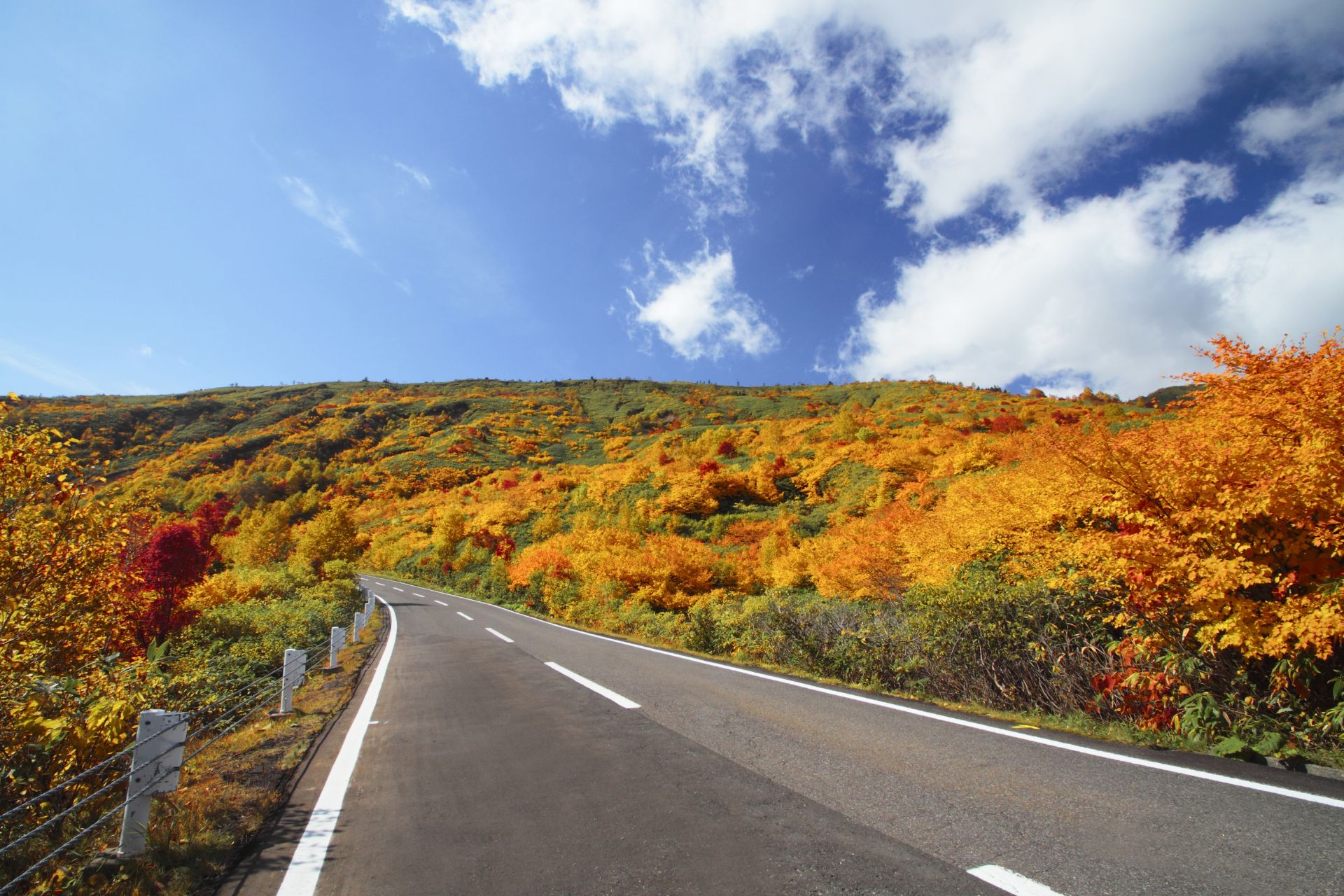 Travelling along the Hachimantai Aspite Line is one of the best ways to enjoy the autumn foliage. This scenic road runs through the volcanic plateau of Hachimantai which is 1,613m above sea level. Each curve in the winding road brings to view more beautiful scenery and wonderful sights of nature for you to feast your eyes on.