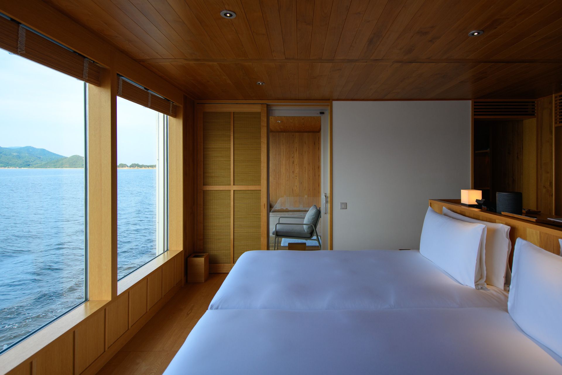 Embark on a luxury cruise to remember as you begin your journey on guntû today. Akin to a luxury ryokan sailing through the serene waters of the Seto Inland Sea, guntû has gained accolades as one of the world’s best travel destinations for its exceptional cruise experience. Cast your cares aside and find rest in the comfort of inviting wooden interiors topped by an iconic gable roof, spacious rooms embellished with endless views of the sparkling sea, and a soothing atmosphere where you can fully be at ease.
